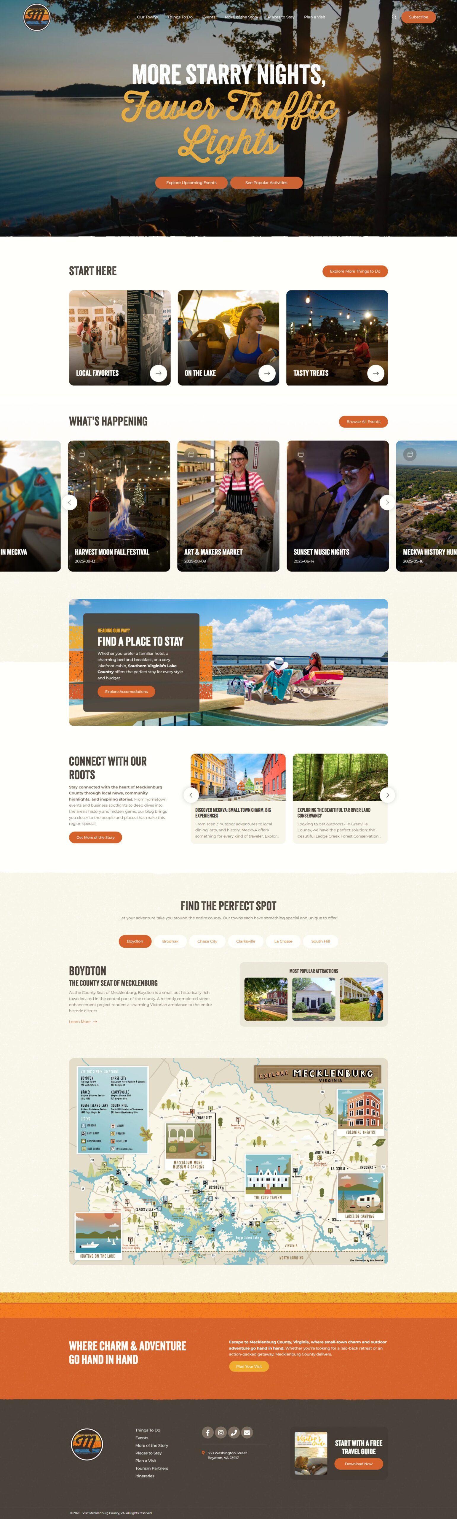 Visit Meck VA is the destination marketing organization for Mecklenburg County, Virginia, dedicated to promoting the region’s attractions, outdoor experiences, cultural offerings, and events to travelers and local visitors alike. Focused on showcasing the county’s unique assets—from scenic trails and waterways to historic sites and vibrant community events—Visit Meck VA serves as the premier resource for trip planning, visitor inspiration, and engagement with everything the area has to offer.